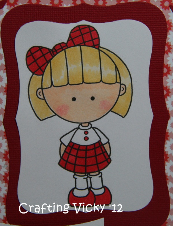 ReplyDeleteI LOVE that paper, Vicky! Perfect choice for this darling digi. It took me a minute to realize that her bow and skirt weren't paper pieced, but colored. lol Great decorative corners.
