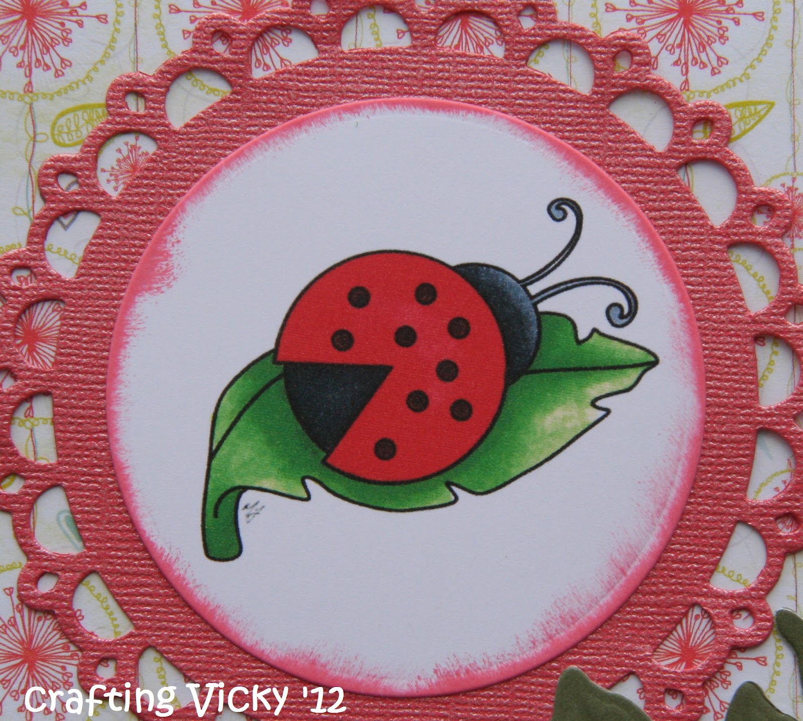 I just love the way the precolored lady bug looked so that's the one that I used for my card. Plus I got to be lazy lol :D I used one of the wonderful sentiment as well.