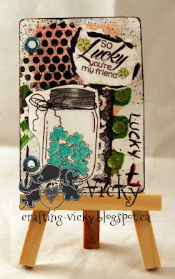 I didn't want to totally cover the fabulous label so I put the digi, that was colored with pan pastels, on a bit of washi tape. So this is the closed (well partly closed look).