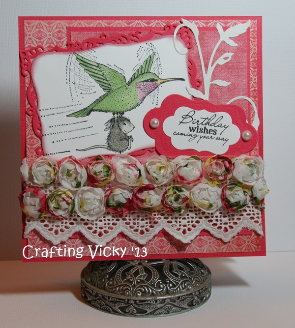 So I turned to some new stamps that I had purchased on sale over at Joanna Sheen. Just loooove that store, free shipping after purchase of £9 including over seas!!! How fabulous. And good prices and products. And super fast delivery. So yup... I go shopping there... too much actually. Anyway that's not the point... the point is I got around to using the great little House Mouse stamp set Feathered Friends - Flying high. I thought it was just perfect to play in the new challenge over at House Mouse and friends which is transportation... and also at the Joanna Sheen challenge which is Pink.